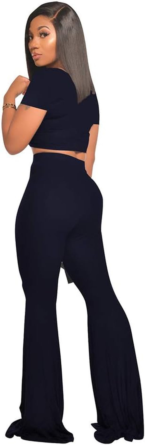 2 Piece Outfits for Women Workout Sets - Sexy Crop Top + High Waisted Flared Long Pant Sets Track Suits Yoga Sports