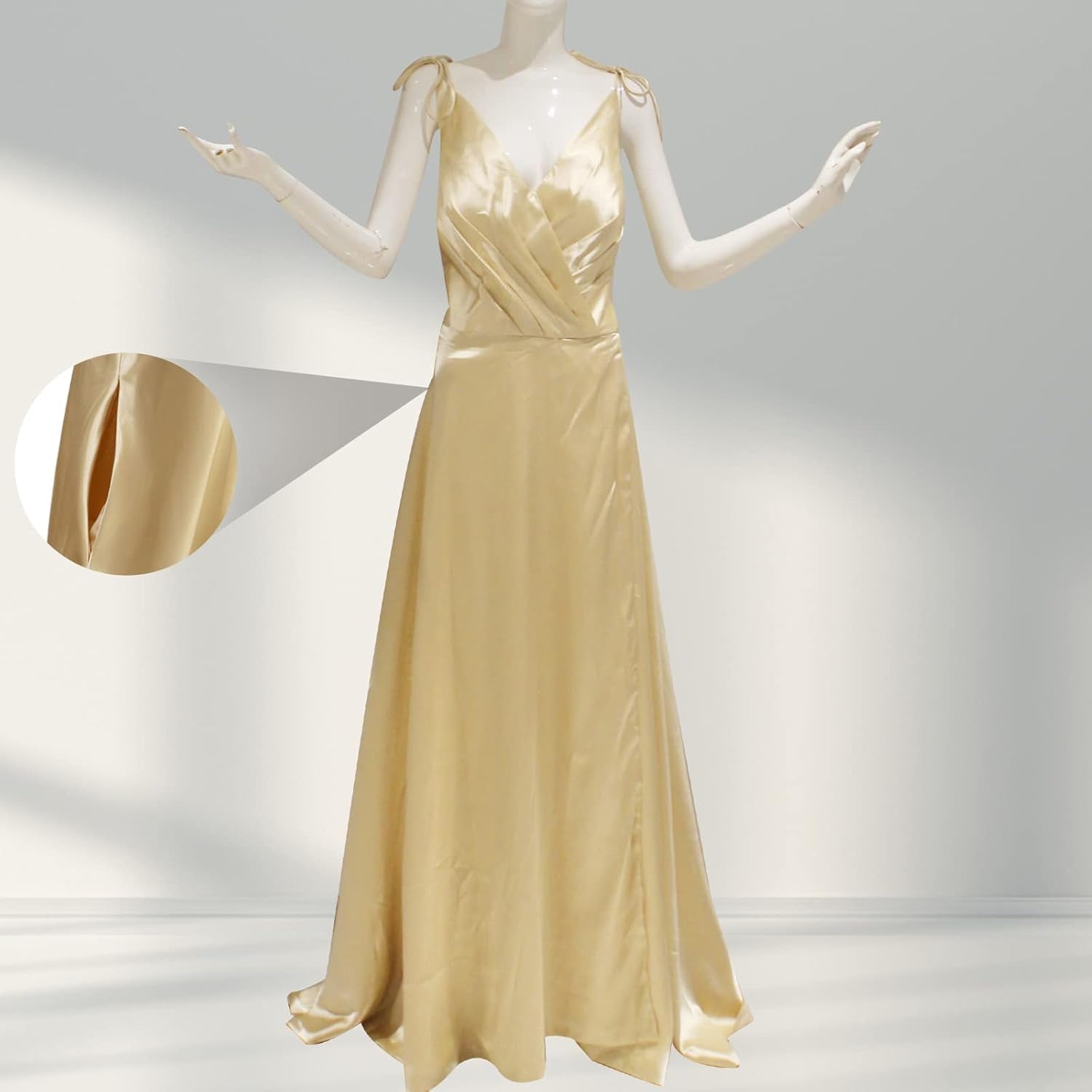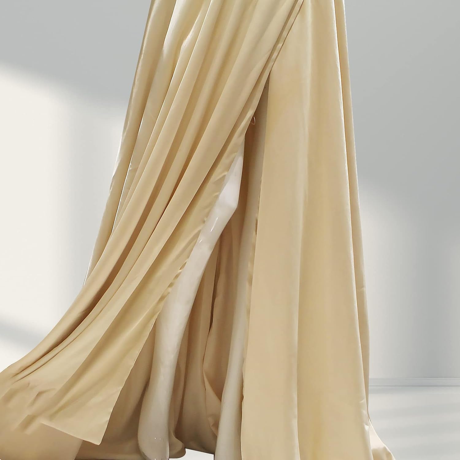 Women's V Neck Prom Dress Slit Long Satin Prom Formal Evening Party Gown with Pockets